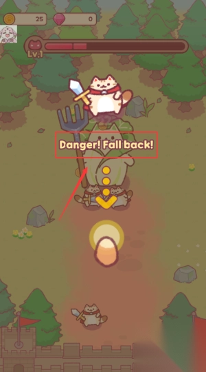 2、控制猫咪角色后退躲避危险,注意上方Danger警告提示。