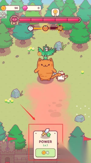 3、点击POWER按钮升级猫咪战力,收集数字2资源强化角色。