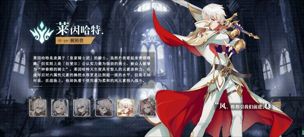 莱因哈特身为隶属于[皇家骑士团]的骑士,别看他外表青涩稚嫩,实际上可是[拉斐尔]公认实力最强劲的剑士,众人皆赞誉他为“神眷顾的骑士”。莱因哈特天生就具备惊人的元素亲和力,成年之后,他对六属性元素的操控水准已然达到超一流层次。然而不知出于什么原因,在战场上,他却唯独执着于运用最为柔和的风元素参与战斗。