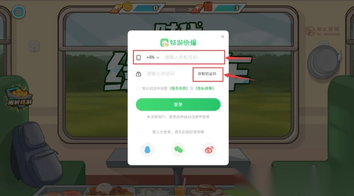 3、然后将收到的验证码填写,点击登录即可游玩。