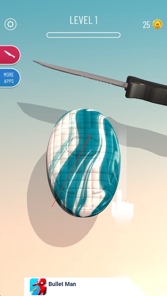 1、进入游戏后选择心仪的肥皂造型与刀具,滑动屏幕控制刀刃角度,平稳切割肥皂块。