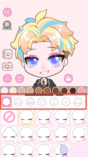 1、进入创作界面后,先从基础脸型与肤色开始定制,逐步添加五官细节,构建娃娃的初始形象。