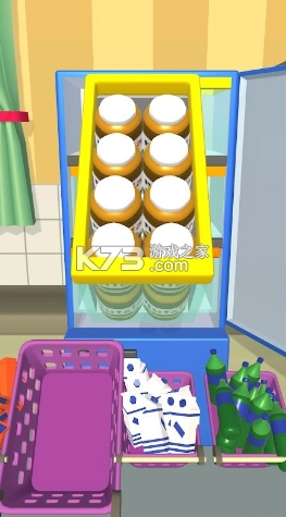 丰富的物品种类:游戏中包含多种食物、饮料和其他杂货,每种物品都有不同的形状和大小。物品种类包括水果、蔬菜、奶制品、肉类、饮料等,增加了游戏的真实感。多样的冰箱布局:不同关卡中的冰箱布局各不相同,有些冰箱可能有更多的隔层或抽屉。玩家需要根据冰箱的具体布局来合理安排物品的位置。合理的分类与摆放:游戏要求玩家根据物品的属性进行合理的分类,例如将蔬菜放在保鲜室,饮料放在冷藏室等。通过合理的摆放,可以最大化利用冰箱的空间,并保持整洁有序。挑战性的关卡设计:游戏提供了大量关卡供玩家挑战,每个关卡都有不同的难度和目标。随着关卡的推进,冰箱内的空间会越来越有限,需要玩家更加巧妙地安排物品。直观的操作界面:游戏界面简洁直观,操作简单易懂。玩家可以通过拖拽的方式将物品放入冰箱,也可以旋转物品以适应不同位置。奖励与成就系统:完成关卡后,玩家可以获得金币或其他奖励,用于解锁新的物品或装饰。游戏还设有成就系统,鼓励玩家完成特定的任务或达成某些目标。选择关卡:进入游戏后,选择一个关卡开始挑战。每个关卡都会有特定的目标,例如在限定时间内填满冰箱或达到一定的分数。查看物品清单:关卡开始前,会显示当前需要放置的物品清单。玩家可以根据清单上的物品数量和类型来规划放置策略。放置物品:从购物篮中选取物品,将其拖动到冰箱内的合适位置。可以通过旋转物品来找到最佳的放置角度,确保充分利用空间。合理分类:根据物品的属性进行分类,例如将蔬菜放在保鲜室,饮料放在冷藏室。保持冰箱内部的整洁和有序,避免杂乱无章。完成关卡:当所有物品都成功放入冰箱并且满足关卡要求时,即可完成关卡。完成后可以获得奖励,并解锁新的关卡和物品。时间限制:部分关卡可能有时间限制,玩家需要在规定时间内完成任务。空间优化:合理利用冰箱内的每一寸空间,避免浪费。物品属性:注意每种物品的属性和最佳存放位置,以延长其保质期。