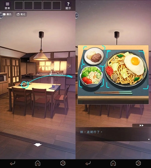 将炒面和凉菜放在桌面上,吃完后点击左上角的牡丹饼,给幽灵就能过关。