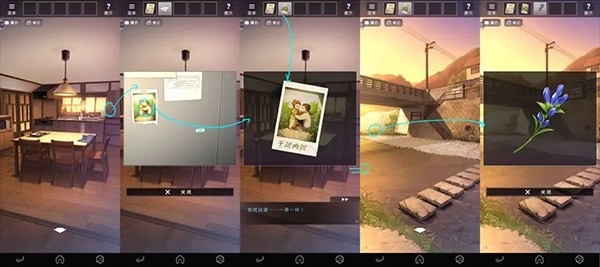 回到客厅,从冰箱门上拿到照片并与碎片拼合,解锁场景川内川(神社左侧),在对岸地面上取得龙胆花。