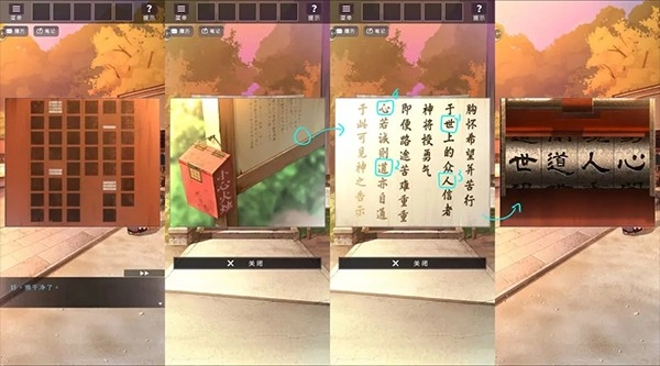 之后与神主对话获得箱子,在箱子上查看提示并排好护身符。