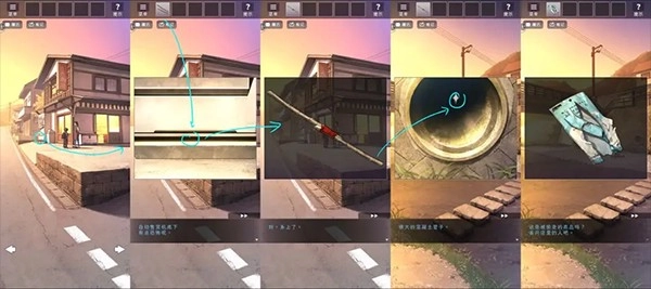 与幽灵对话后来到街道。与商店老板对话后调查商店门口,分别点击门口的草和猫爪印,之后来到河川处点击幽灵。再次回到店门口与弟弟对话得到弟弟的零花钱。