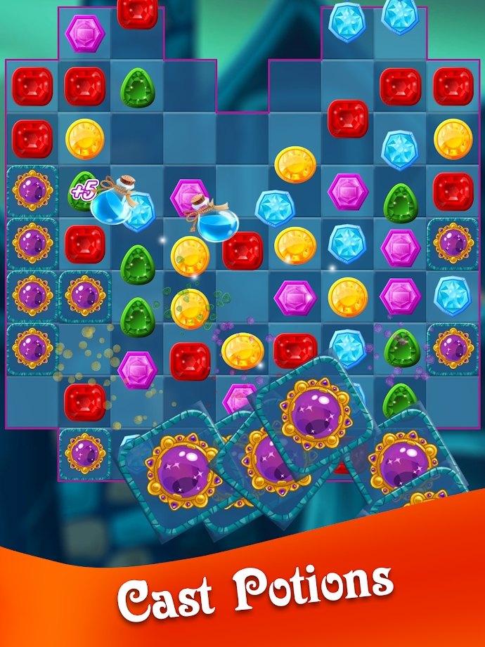 有机会升级您的法术,用手指交换珠宝,匹配其中的3个然后爆炸,完成挑战。