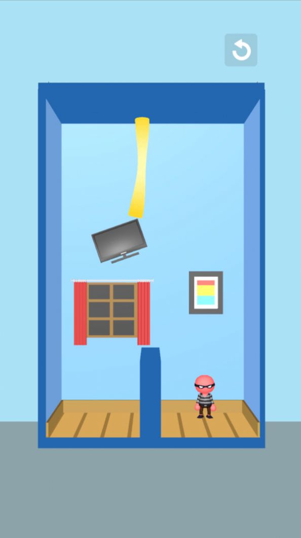 在游戏内为你们设计了很多的难题关卡,你需要利用房间之内的道具来将里面的小偷给杀死。