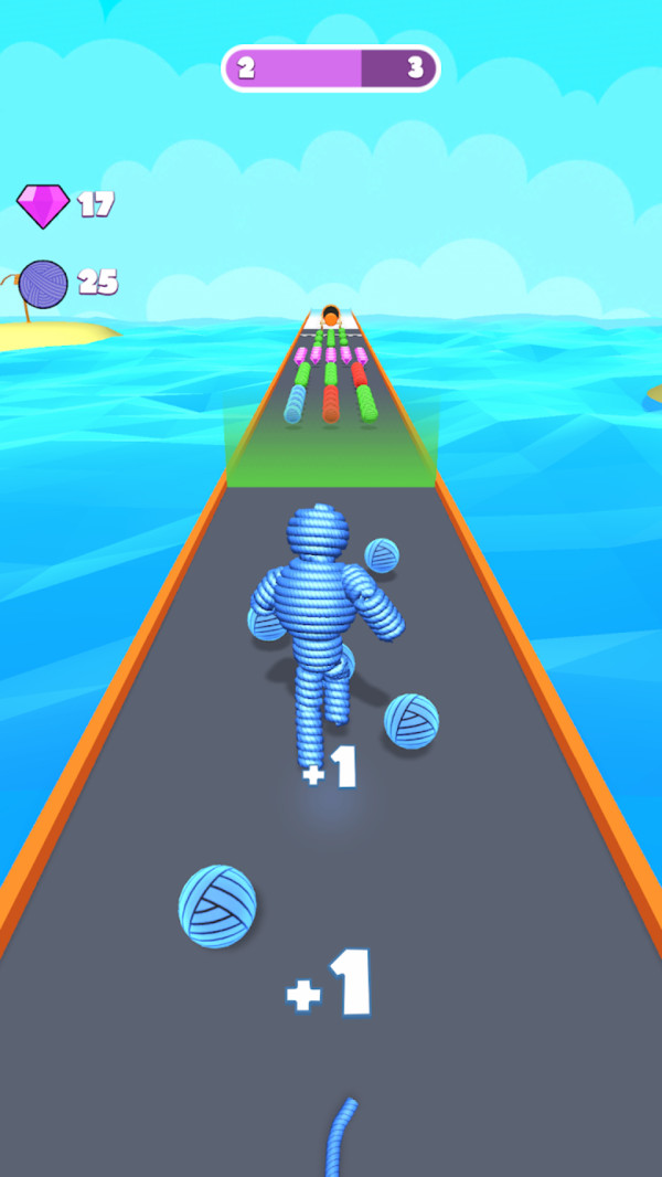 通过滑动屏幕可以完成角色的左右移动,不断地收集绳索,使自己能够成功抵达终点。