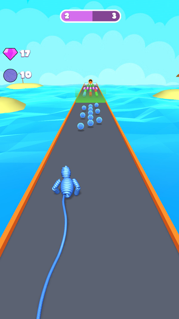 1、玩家将操控一个由绳索人在赛道上进行奔跑,在前进途中会消耗绳索。