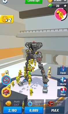 1、消耗大量金币进行机器人的研发与改造,不断加快工作效率。
