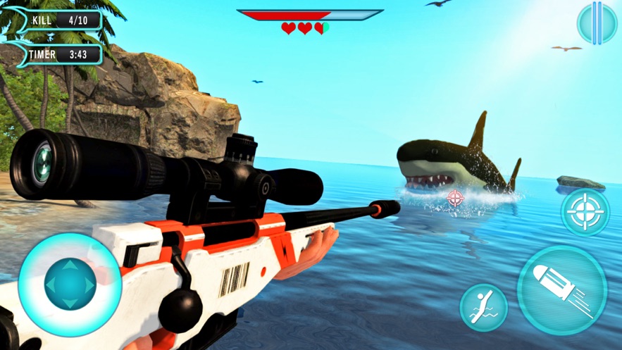鲨鱼是十分凶恶的,因此玩家们在进行狩猎的时候也需要非常的小心,虽然自己有枪,但也不是无敌的。