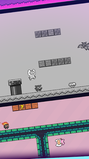 像素的世界画面,在游戏内存在着很多的关卡内容,玩家们需要控制自己的角色灵活的避开各种危险顺利抵达终点。