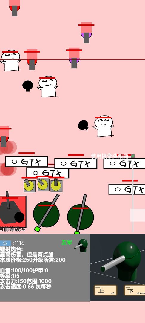 【无聊塔防间接入侵】#魔性画风,轻松解压#整体的画风设计十分的魔性,所有的物体都是有简单的线条组成的,玩家们将要在这里通过点击来实现武器的放置,并消灭所有前来入侵的敌人,保护自己的地盘,关卡内的难度将会逐渐的增加,玩家们也需要收集更多的武器来提升自己的实力,快来下载游戏挑战一下吧。