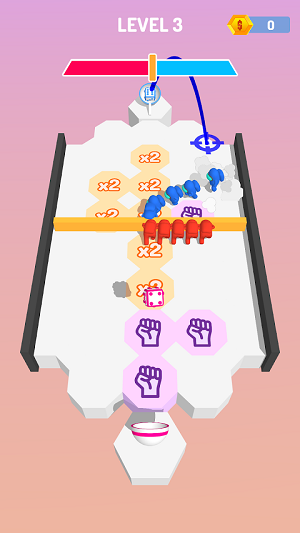 充满着欢乐的多人竞技玩法,玩家们需要在游戏内控制着自己的角色将屏幕之中的骰子推到指定的地点,需要你们有着极为敏捷的反应力以及手速能力。
