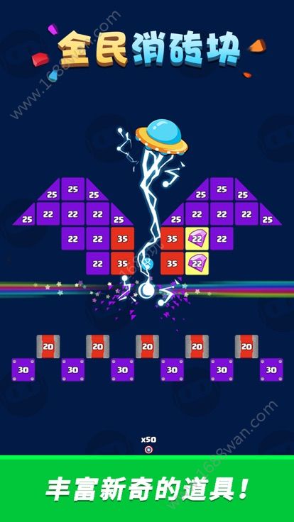 1、优先击打有技能的砖块,可以帮助你更快地消除喔。