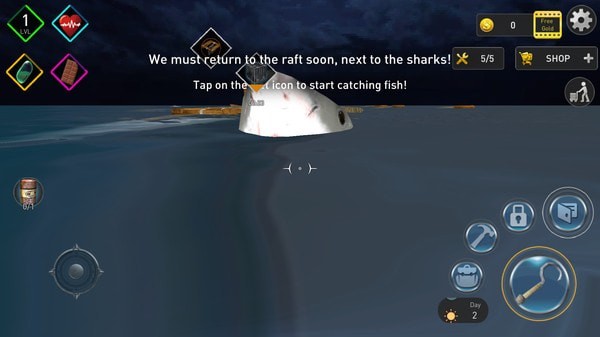 海洋之中存在着各种各样的危险,尤其是凶恶的鲨鱼,当你在海洋之中迷失方向的时候,一定要收集到足够的生存资源,不仅需要保证自己的食物,还要小心成为它人的食物。