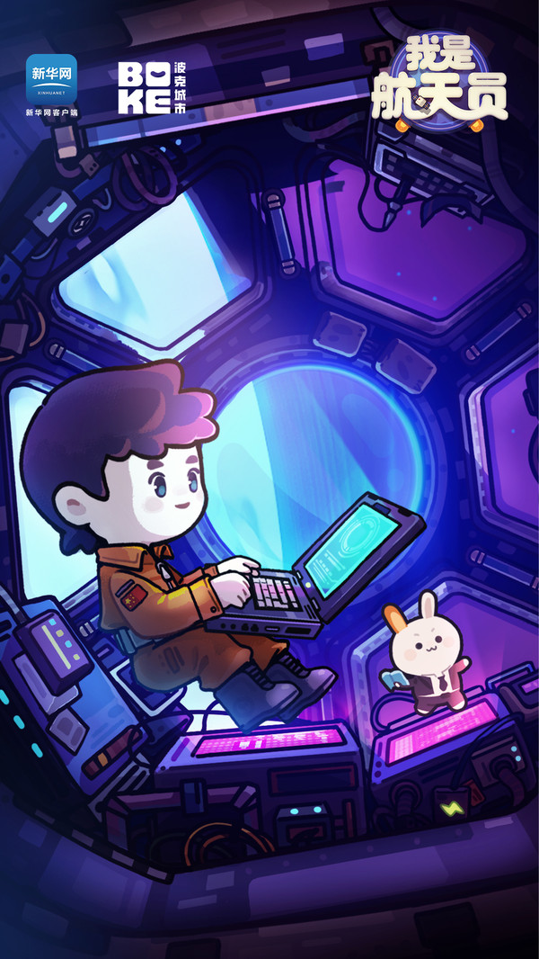 2、很可爱的卡通画风模拟宇航员在国际空间站中工作和生活的过程。