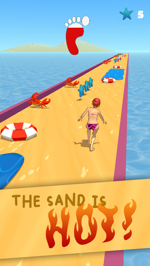 Hot Sands 3D,一款充满挑战的沙滩奔跑类型的休闲闯关游戏,玩家将会在游戏中控制一个小女该进行挑战各种任务,不断的躲避各种各样的障碍来完成精彩的夏日狂欢,玩家需要时刻注意脚掌的灼热程度,跳入水中可以瞬间对自己的脚掌降温,喜欢的玩家们快来下载这款游戏玩玩吧!