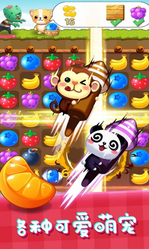 3、最简单有趣的三消游戏,融入了僵尸时代的背景主题,让闯关更加的刺激非凡。