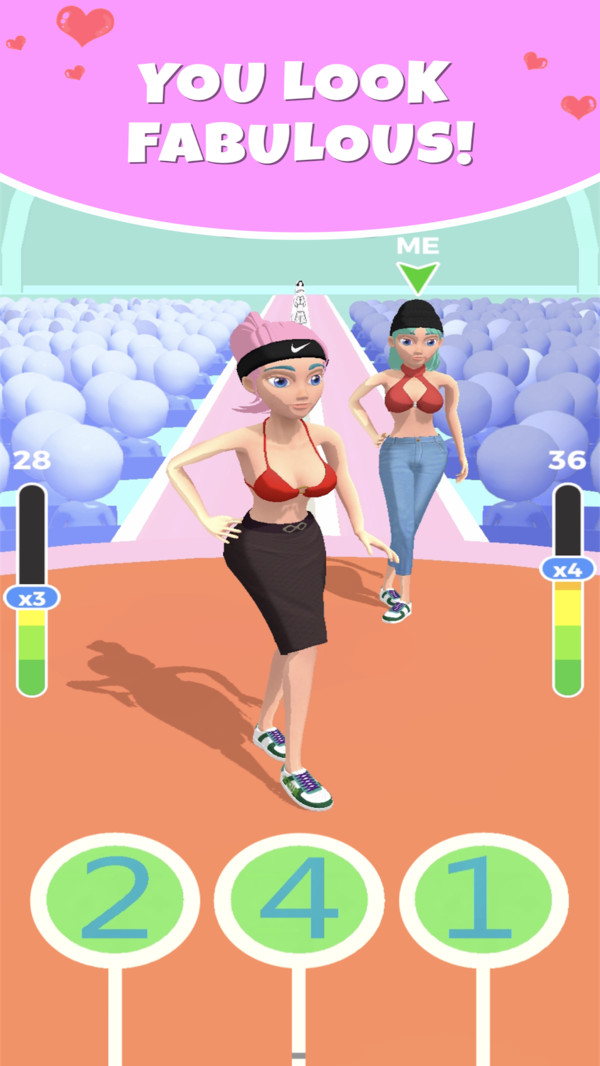 走秀我最美一个趣味十足玩法超多,超级减压的趣味闯关游戏,在这里,一边走在跑道上,一边交换合适的衣服,比赛越精彩,分数越高,才能战胜对手,在游戏中,玩家将能够随意帮助主角完成一系列具有挑战性的任务,感兴趣的玩家可以下载体验。