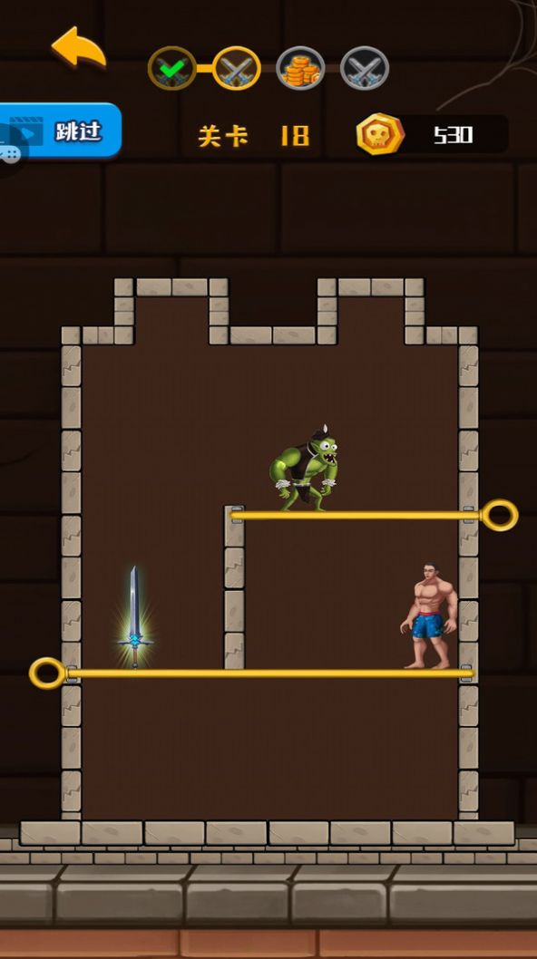 救救裤衩哥一个设计非常的新颖,充满挑战的趣味休闲游戏,在这里,故事主角是一个穿着花裤衩的凶悍男子,他在一座城堡里冒险,使用了拉针的益智游戏,我们需要让裤衩先拿到武器,然后再和怪物战斗,完成关卡的挑战,收集金币,可以用来解锁不同的皮肤,喜欢就来下载体验吧!
