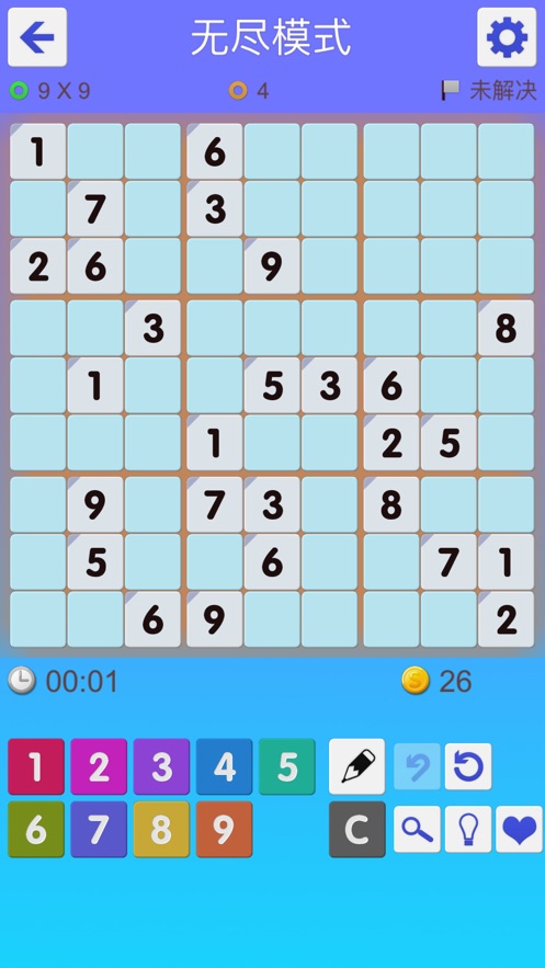 每个谜题都由一个在不同位置给与提示数字的9x9网格组成。游戏的目的是将空方格填上数字,使得每一行,每一列以及每一个3x3宫都没有重复的数字出现。