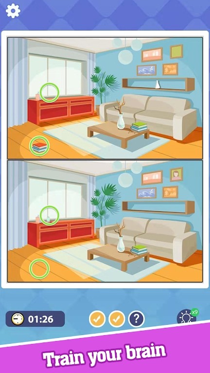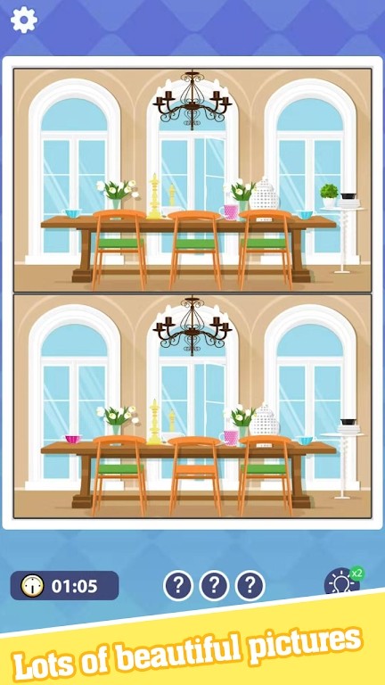 1、游戏非常的简单,基本没有什么操作,靠眼力的游戏,找到不同。