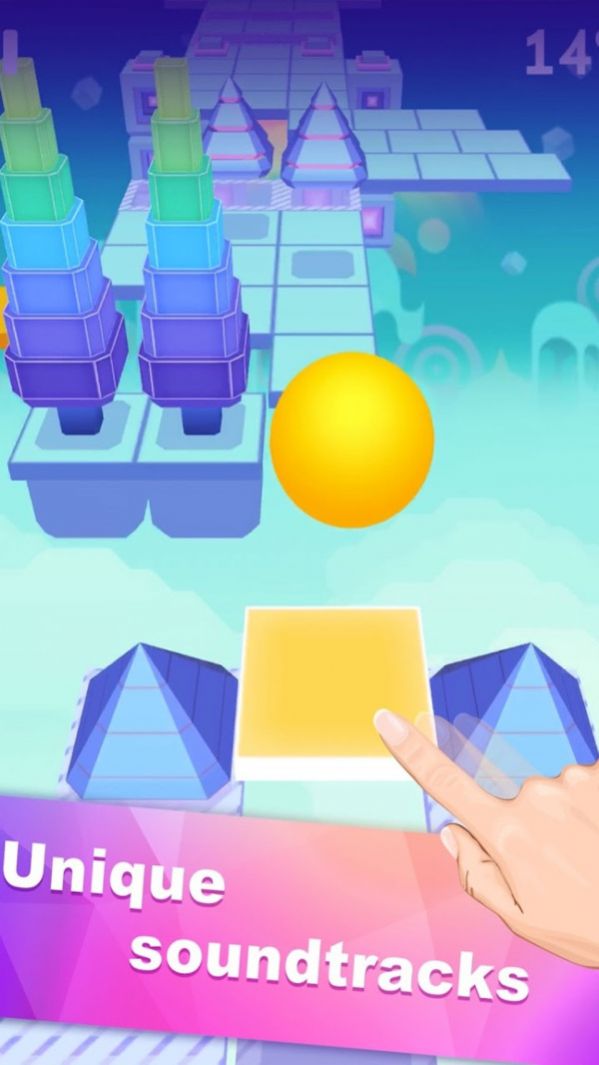 2、用手指左右操纵球,踩着音乐,开启你在这个世界的挑战,享受休闲玩耍。