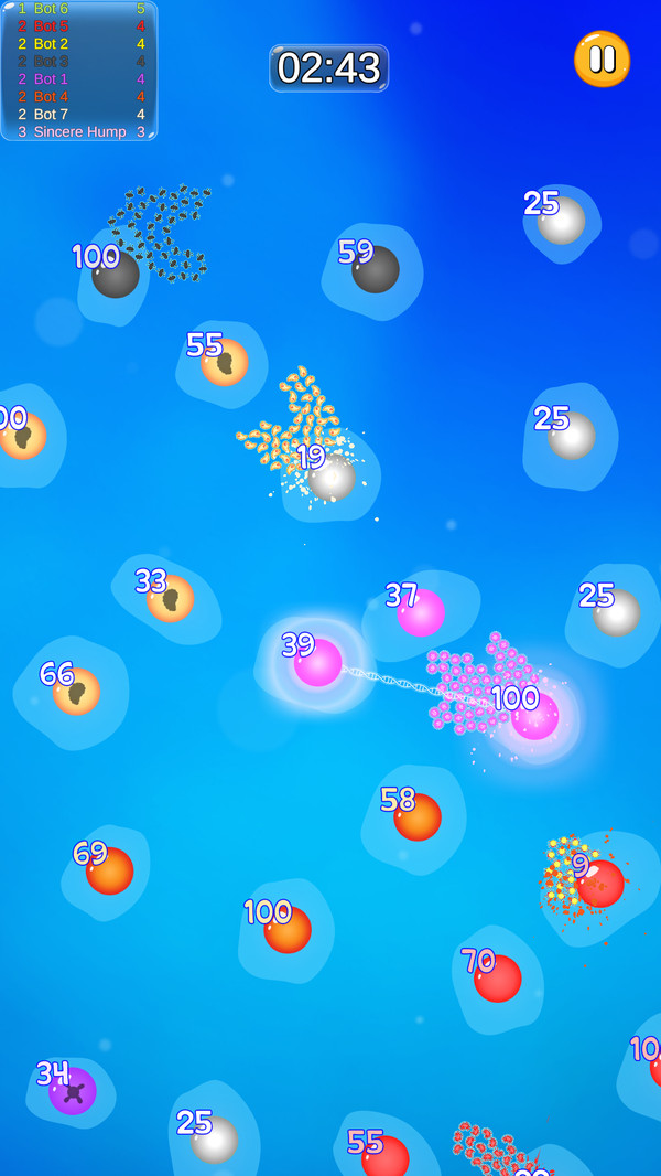 非常简单的吞噬类玩法,通过控制自己的细胞来不断地吃掉比自己小的生物,并经过自己的努力,最终能够使其变得更加巨大。