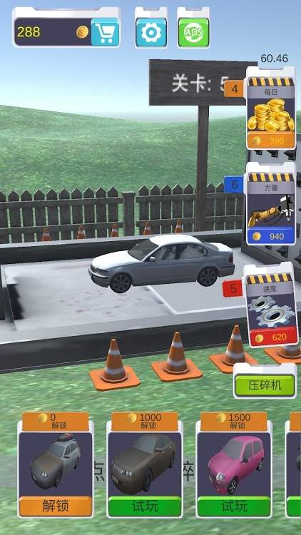 3、一辆家用小汽车当场瞬间就可以被碾压得像纸一样薄,你可以在游戏中尽情的体会液压机的厉害之处。