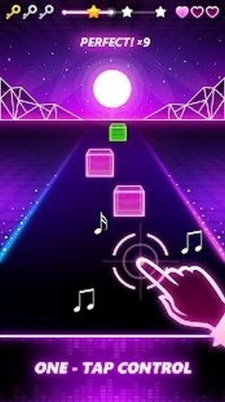 3、音效游戏的区块随着音乐的节奏而移动,音效根据音乐类型分为不同难度的多种游戏等级。