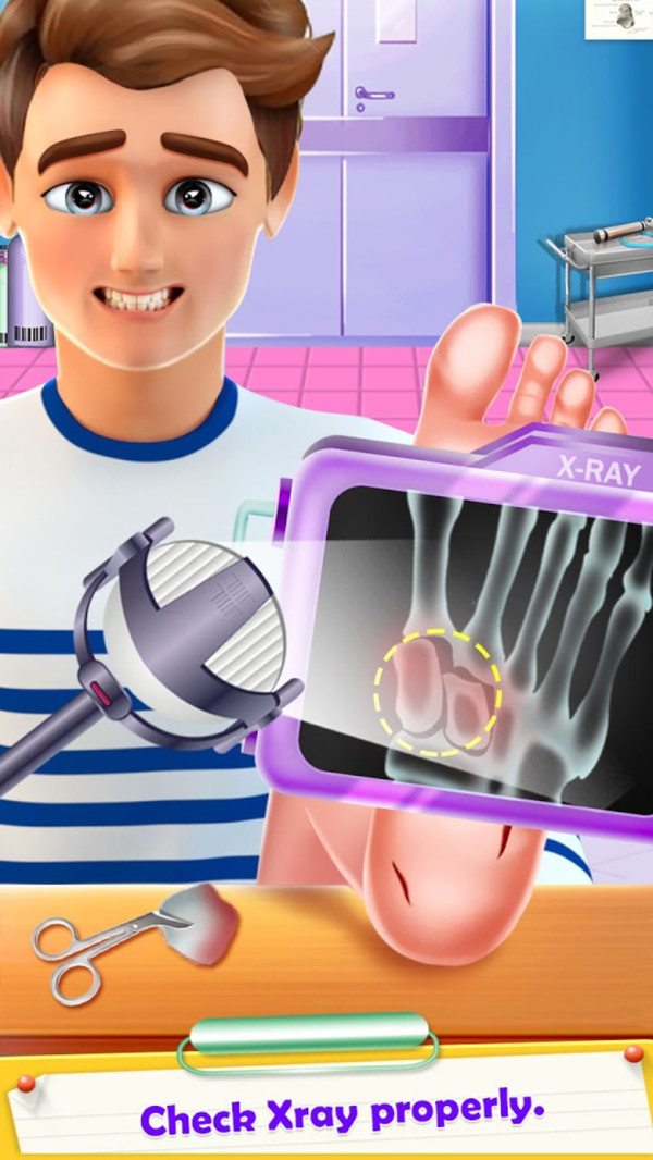 【医生修个脚】是一款非常不错的休闲益智游戏,其中的主要游戏是修脚,会有很多不同的关卡,所以你的脚上会有不同的问题,系统会提供给玩家进行探索,大量道具可以自由使用,使用这些道具可以帮助您解决任何问题,游戏玩法非常简单,整个游戏过程中你可以收获很多欢乐,玩家可以随时体验,欢迎前来下载哦。