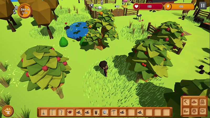 模拟沙盒自由的搭建你想要创造的东西吧,例如农田、房屋、农场等。