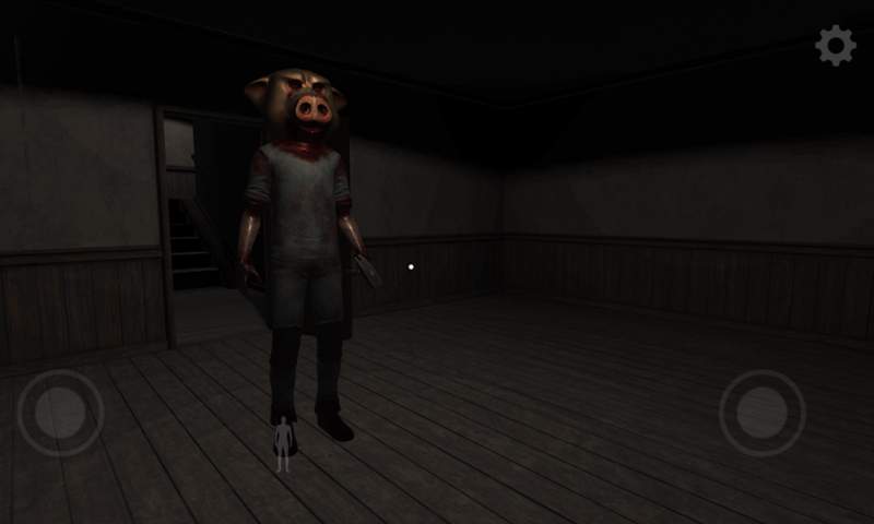 可怕的冒险逃生游戏,猪圈里的猪怪可以直立行走,有着和人类一样的身体,一头恐怖的猪头,不要被这家伙抓住,否则你会吃亏的。