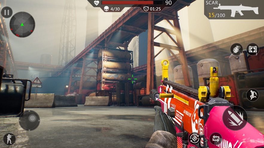 点击屏幕按钮就能够完成射击的操作,轻松就能够上手。