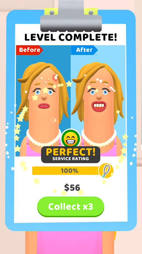 【丘疹医生】一款3D卡通风格的模拟医生休闲游戏,在城里,你经营着自己的店铺,通过你的服务可以成功的解决市民朋友的痘痘问题,而且各种各样的工具任你使用,把痘痘挤出来再用你完美的美容技术顺利还原美丽容颜,给顾客带来最优质的服务体验,快来下载吧。