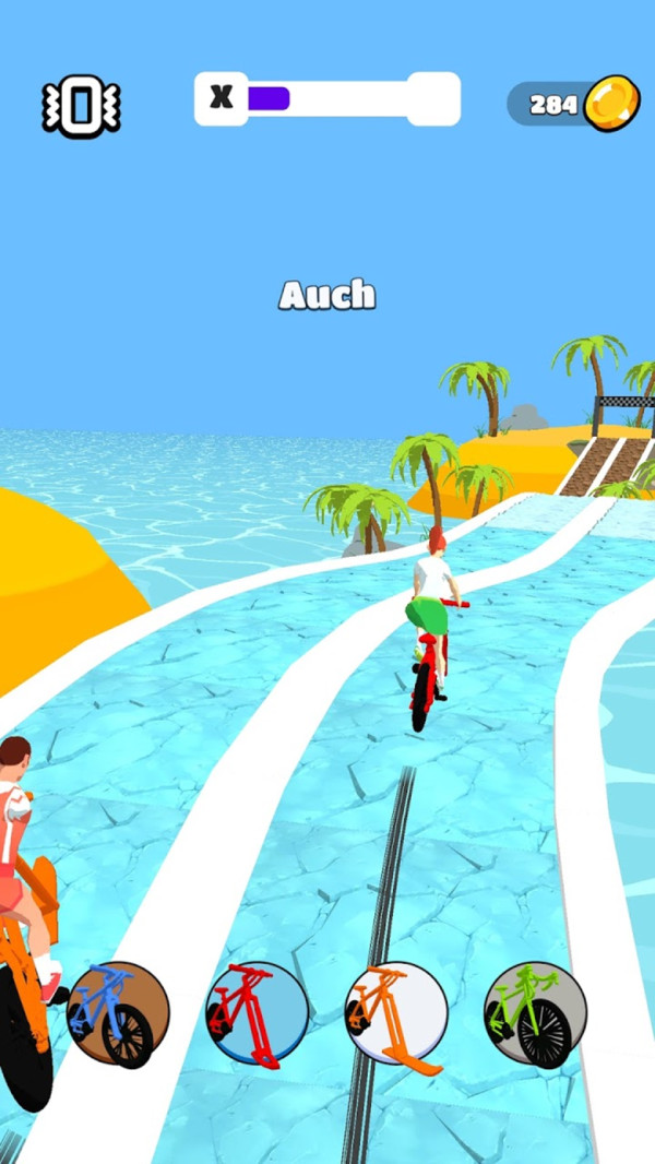 游戏内一共拥有着多种不同的自行车,玩家们可以在面对工作障碍的时候灵活地切换,使自己能够安全且顺利的抵达对面,并不断地挑战下去。