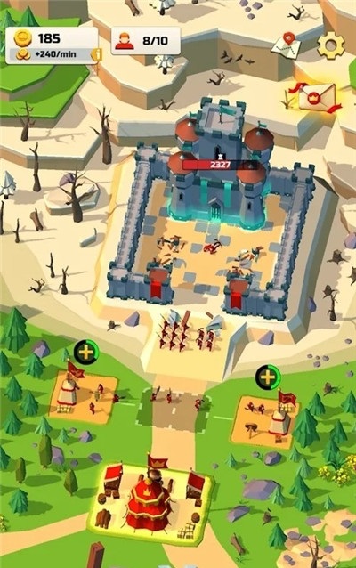 1、你将在这里需要打造自己的领地,并通过召集兵力来不断的升级它们。