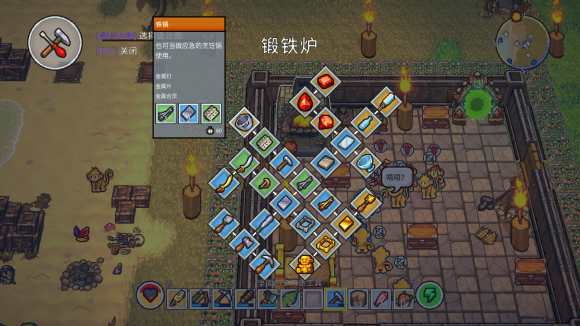9、批量制作,工作台和火堆界面长按目标道具,左上出现进度,进度满后出现数量轴,拖拽到你想要制造的数量,再松开鼠标即可。(会有一些小bug,比如拖拽数量后松开鼠标无反应,关于本条我在末尾会说一种类似方法)