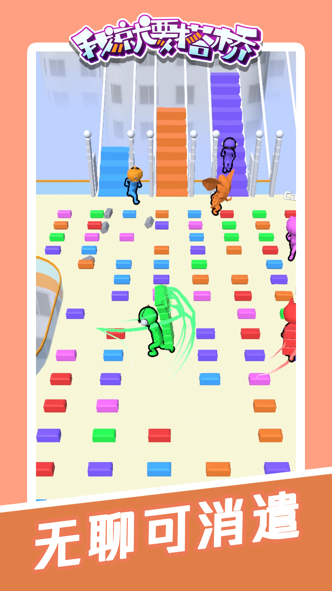我就要搭桥具有着十分解压轻松的闯关玩法,只需要单手,玩家们就能够轻松完成操作,在比赛之中收集各种各样的方块来进行桥梁的搭建,使自己能够顺利的抵达终点位置,赢得实力为自己带来更多的奖励,在游戏的体验将会让你时刻充满着欢声笑语,快来下载游戏试一试吧。
