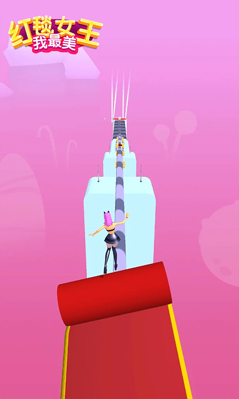 1、游戏中你将控制可爱的小姐姐在红毯上行走,不断的收集更多的红毯。