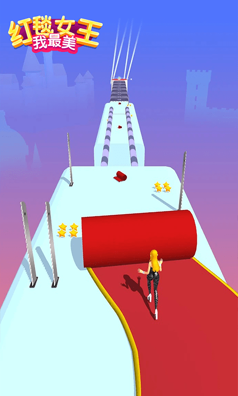 3、魔性跑酷玩法,红毯一开始是卷起来的,你要自己去铺设,还要去收集路上更多的红毯哦。