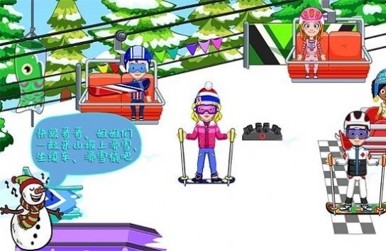2、玩家可以在游戏中体验到很多有趣的游戏,全家人可以和朋友一起去雪地里滑雪。