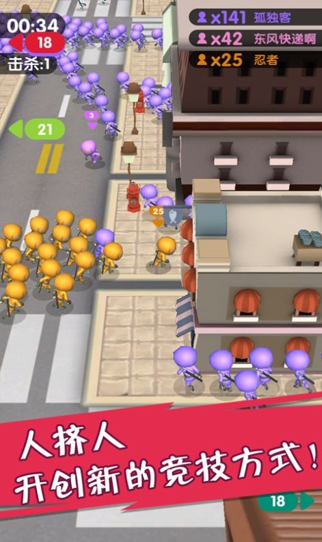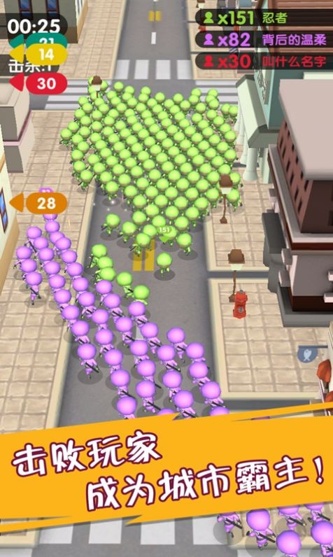 极具趣味性的人群大乱斗玩法,在城市之中不断地去收集各种小人,让自己的队伍更加巨大,并吞噬比自己的小的对手,成为最强的玩家。