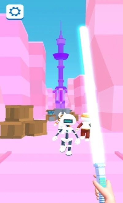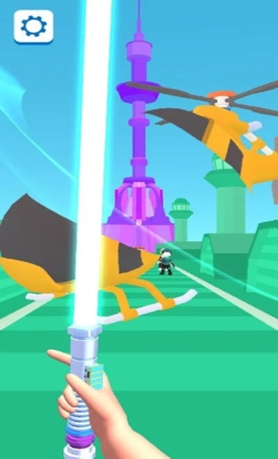 2、通过滑动屏幕,这样你的激光剑就能按照你滑动的方向劈开敌人或障碍物。