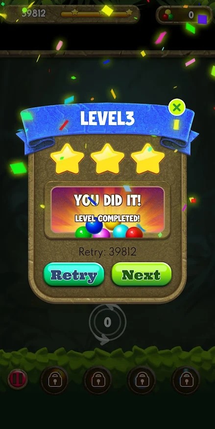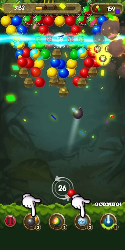 拥有轻松易上手的操作,射击相同颜色的泡泡即可消除,并获取分数。
