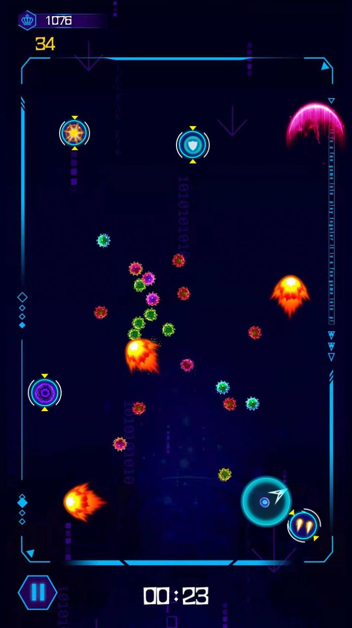 4、整个空间都分布着病毒,玩家必须一边攻击一边来扫荡新的道路;