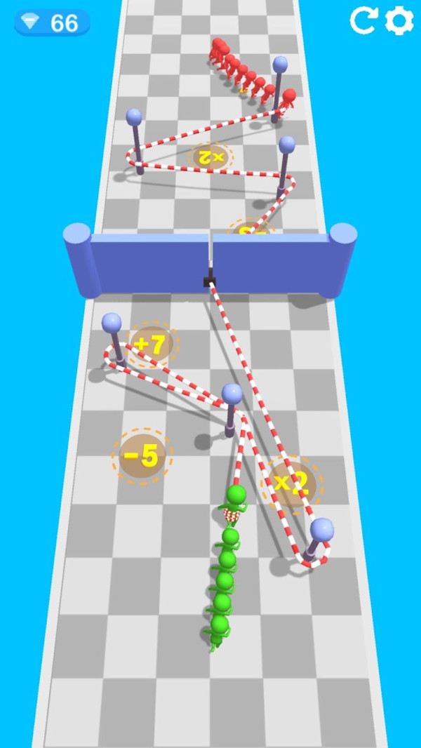 绳索人群将会上演一场极其精彩趣味的人群大乱斗玩法,在竞技场之中去控制着自己的人群不断地前行,同时需要去小心各种各样的障碍物,收集并使用一些功能性道具来帮助自己,避开各种危险并最终能够安全且快速的抵达终点位置,为自己带来更多的乐趣,快来下载游戏试一试吧。